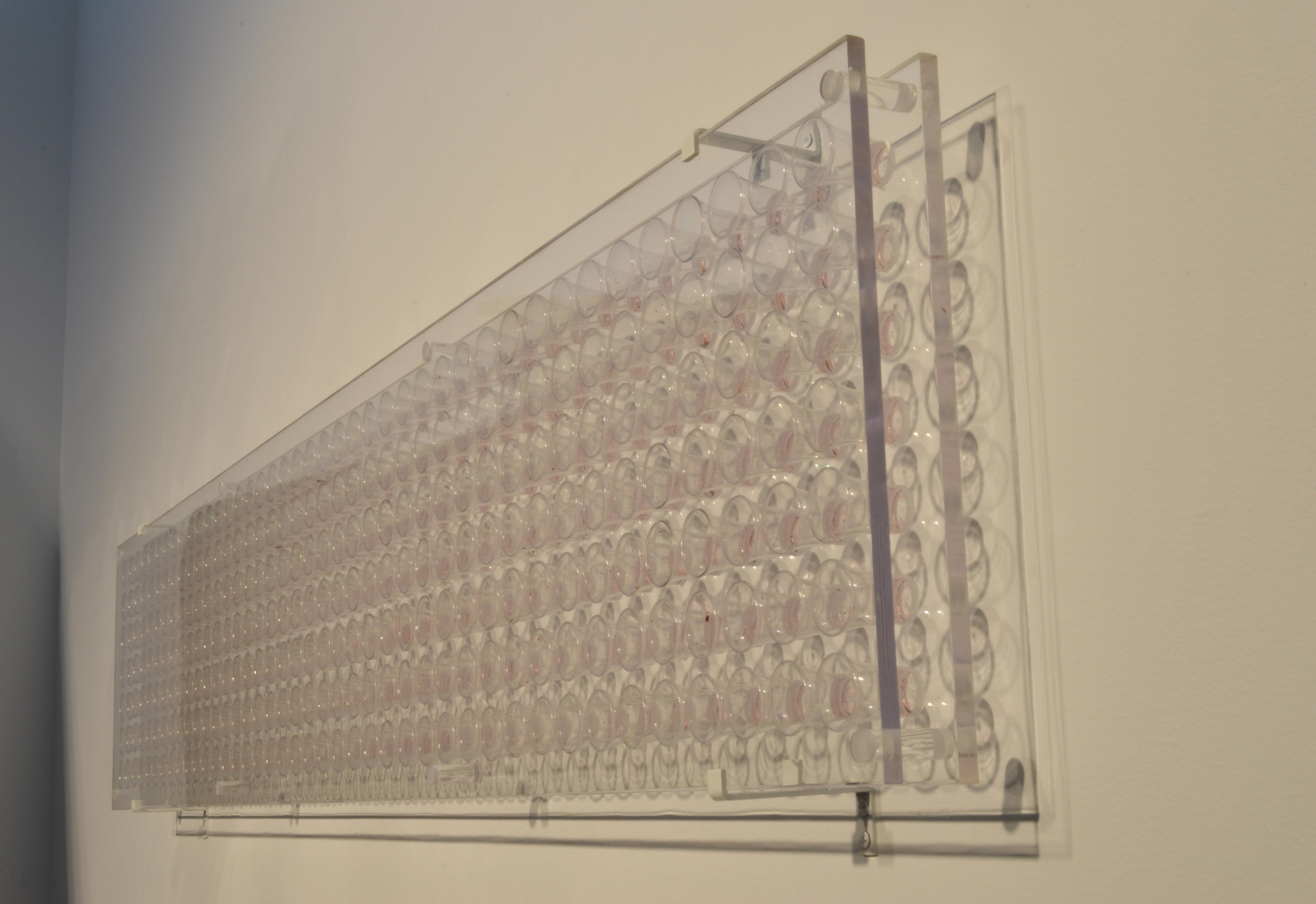 Published June 26, 2015 at 3492 × 2400 in Sculpture ← Previous Next → Looking at Life Through Rose-Colored Glasses (2015) 63″ x 3″ x 12″ Used Communion Cups, acrylic glass