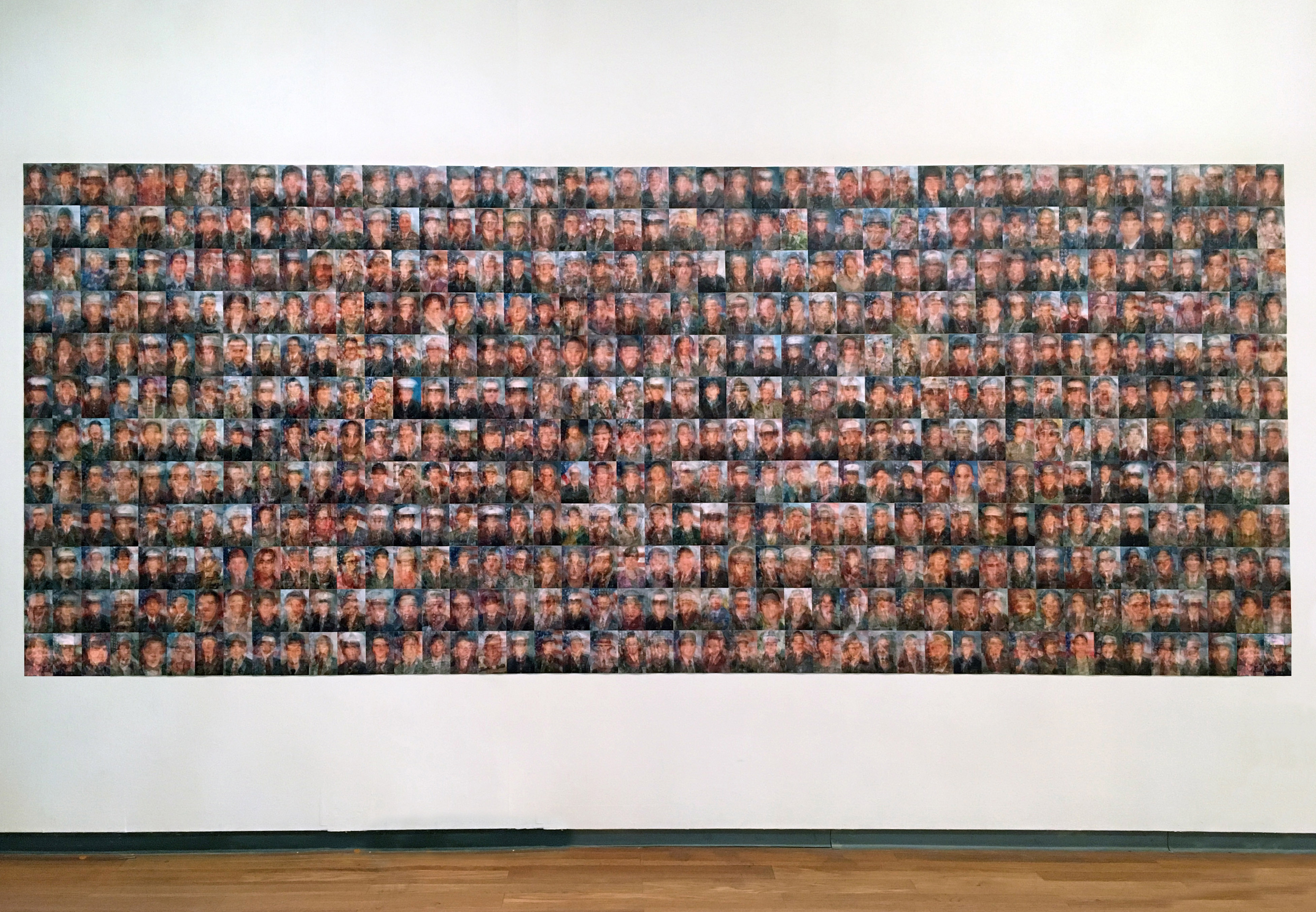 This piece consists of 4,497 images of the men and women who died while serving in the Iraq War from 2003-2011 and the Congressmen and women who were seated when voting to go back to war.