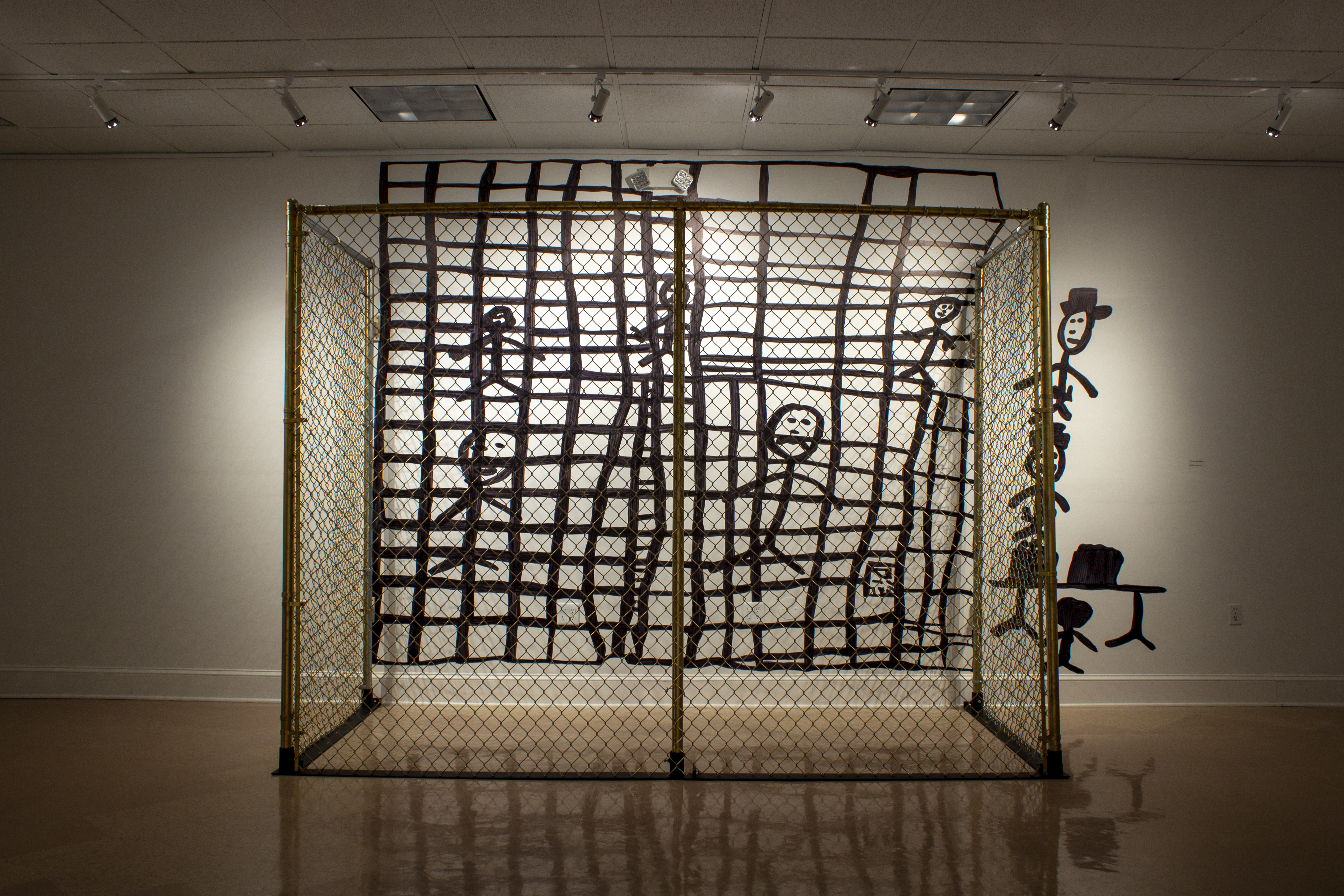 Published March 5, 2020 at 5184 × 3456 in Installation ← Previous Next → To Whom It May Concern (2020) | 10’ x 18’ x 4’ | Metal chain link fencing, marker